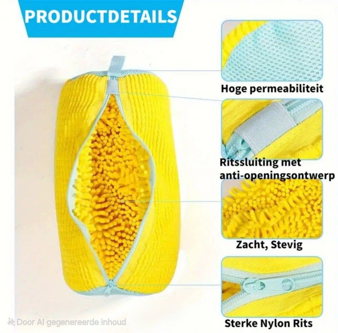 Deze schoenwaszak zorgt ervoor dat de wasmachine en je schoenen niet beschadigen. Door de honderden microvezels aan de binnenkant van de waszak worden je schoenen extra schoon.